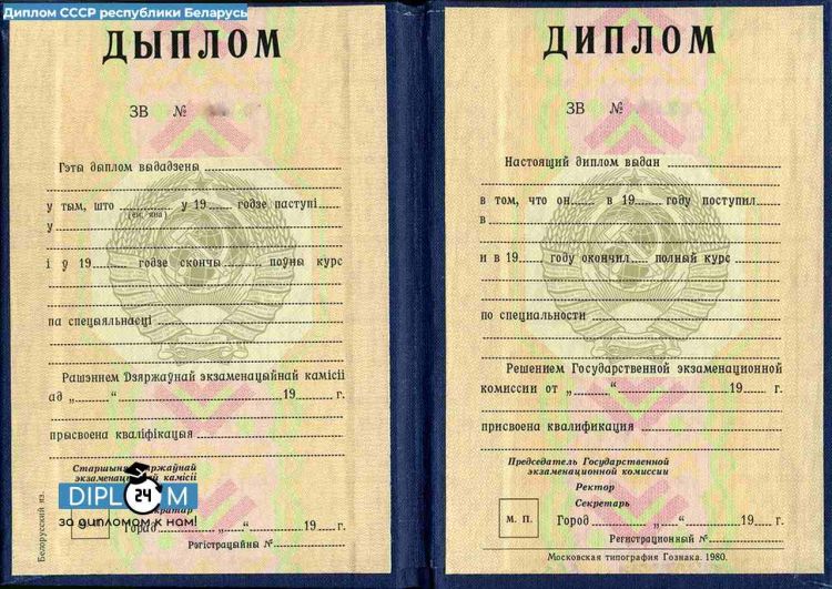 - Диплом СССР о высшем образовании Республики Беларусь